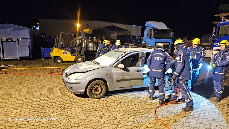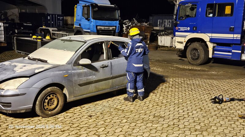 Jetzt hatten die Helfer beider Bergungsgruppen wieder einmal die Gelegenheit, einen zuvor organisierten PKW, der anschließend in der Schrottpresse landen durfte, zu bearbeiten. Dies kommt für die THW-Helfer seltener vor, da bei Verkehrsunfällen zumeist die Feuerwehr die Erstrettung vornimmt. Aber auch zum Anheben von Trümmerteilen oder der Schaffung von Zugängen sind Schere und Spreizer nützlich und daher Teil der Ausstattung der Bergungsgruppe.