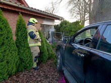 Vorausgegangen war ein PKW-Unfall, wodurch eines der beteiligten Fahrzeuge von der Fahrbahn abkam und gegen den hinteren Teil der Gebäudewand krachte.