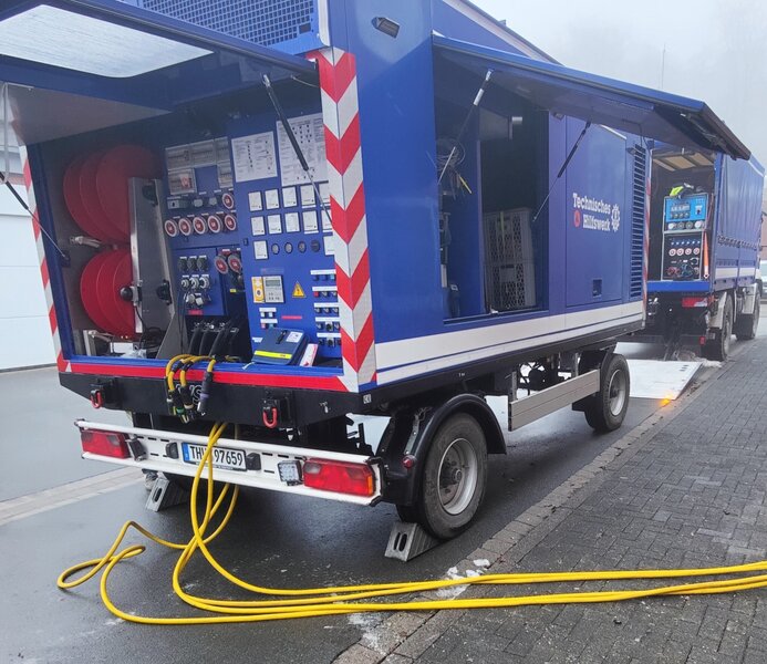 Während dieser Zeit wurde die Netzersatzanlage zweimal von Helfern mit der mobilen Tankstelle der Fachgruppe N (Notversorgung/Notinstandsetzung) mit Kraftstoff versorgt.