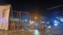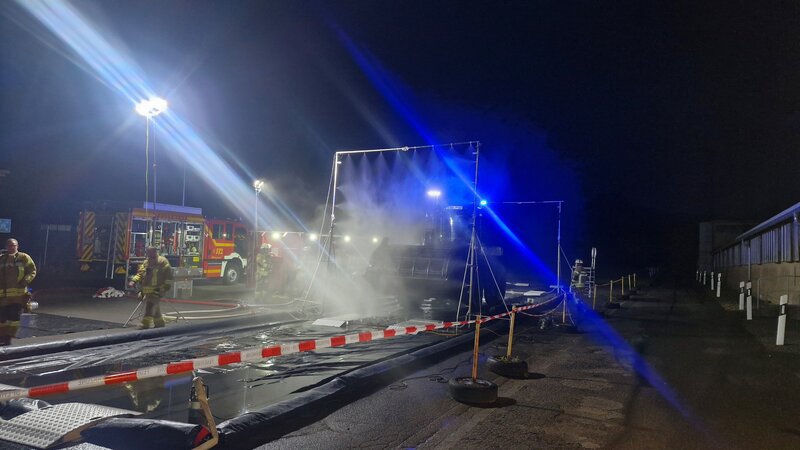 Die Ablagerungen von Giftstoffen am Radlader wurde in einer von der Feuerwehr errichteten Dekon-Schleuse nach dem Einsatz entfernt. Kontaminiertes Löschwasser musste fachgerecht entsorgt werden.