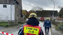 Während der Begutachtung der Schadenstelle durch den Baufachberater und das Ordnungsamt stürzte die komplette Giebelwand ein. Ein Betretungsverbot wurde ausgesprochen. Jetzt war auch klar, dass die Straßensperrung bis auf weiteres aufrecht erhalten werden musste. Für den THW Ortsverband Paderborn gab es aber keinen Folgeeinsatz in Form von Abstützmaßnahmen.